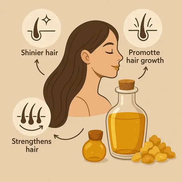 يُعد زيت لبان الذكر من أفضل أشكال الاستخدام الموضعي للشعر، إذ يخترق فروة الرأس بسهولة ويغذيها بعمق.
